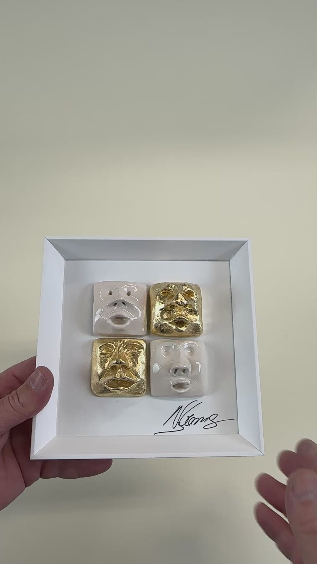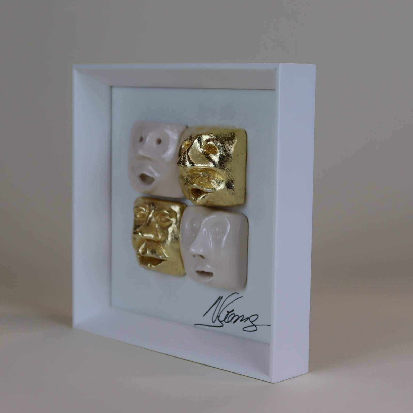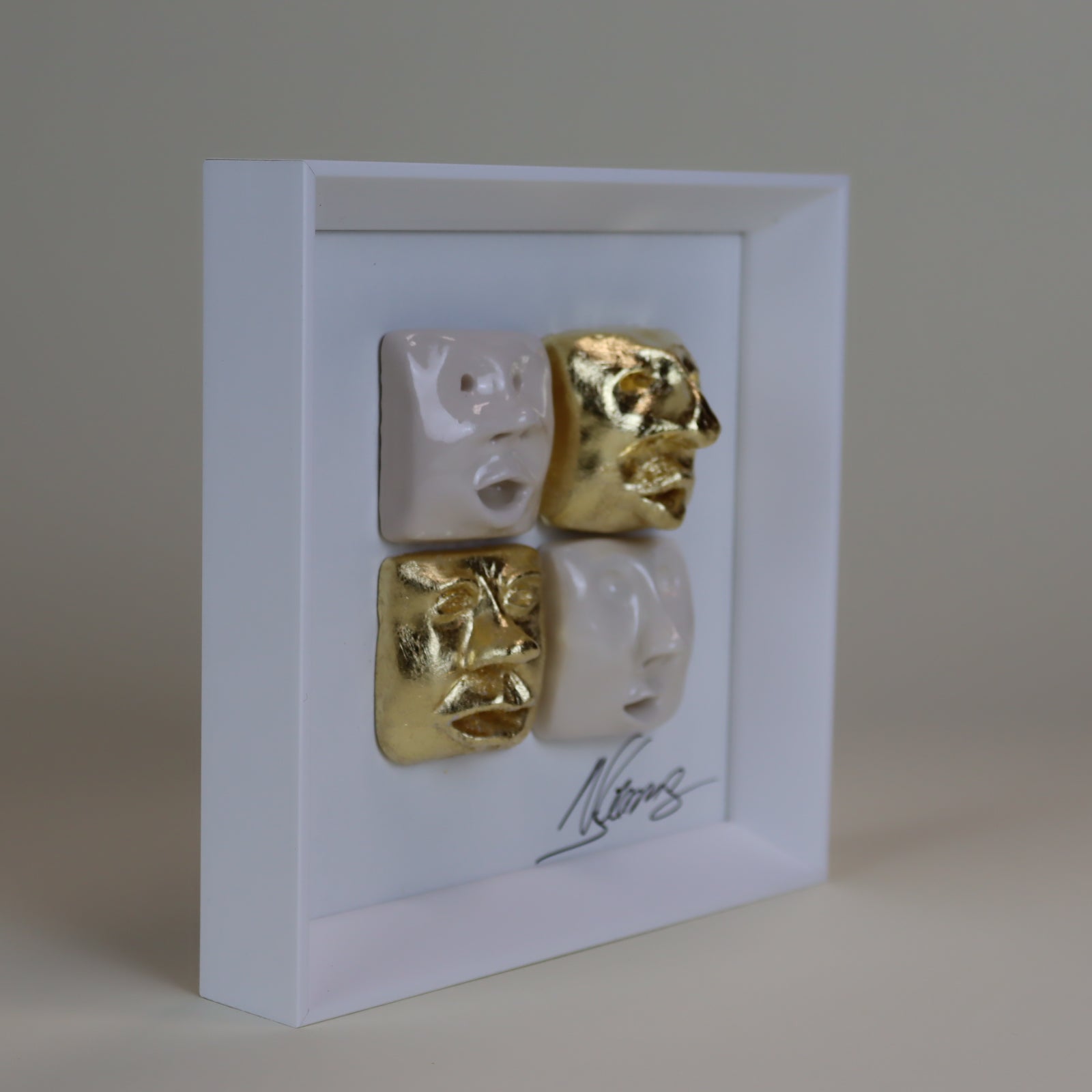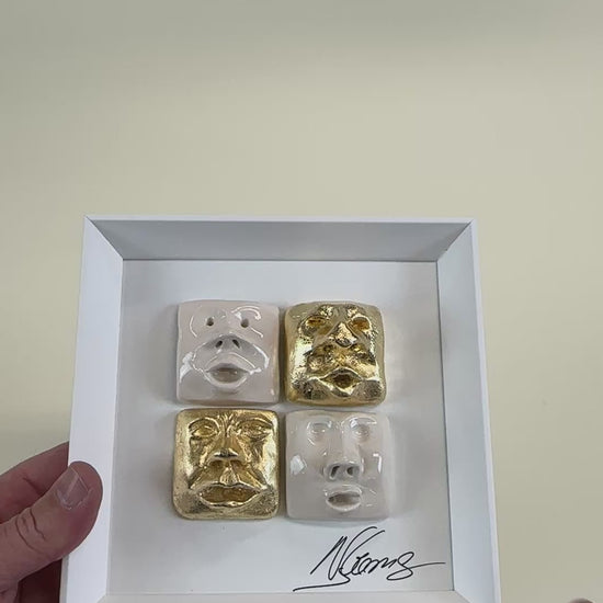 Quadro de Cerâmica Artesanal | 4 Rostos | Folha de Ouro